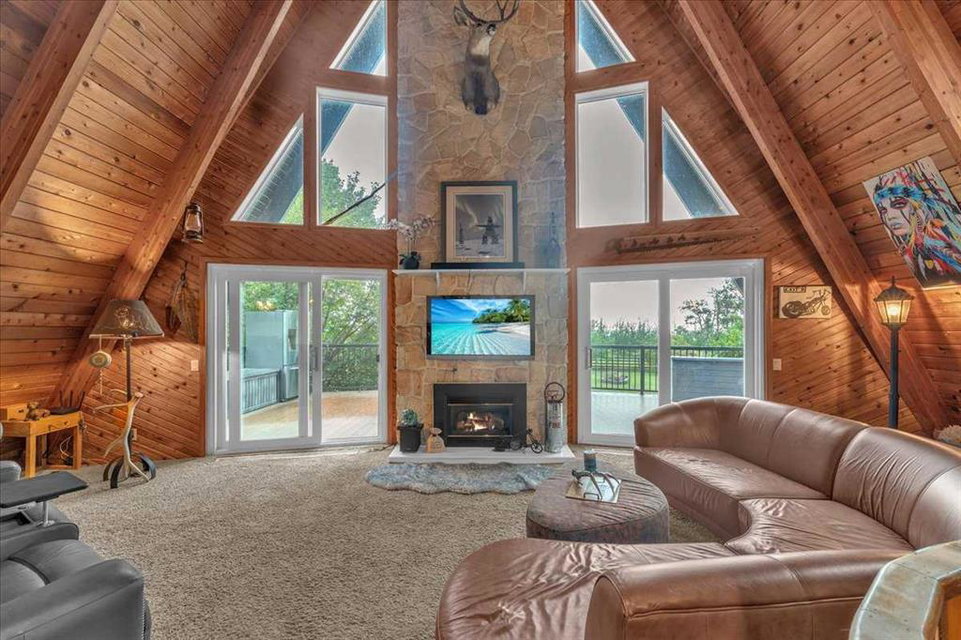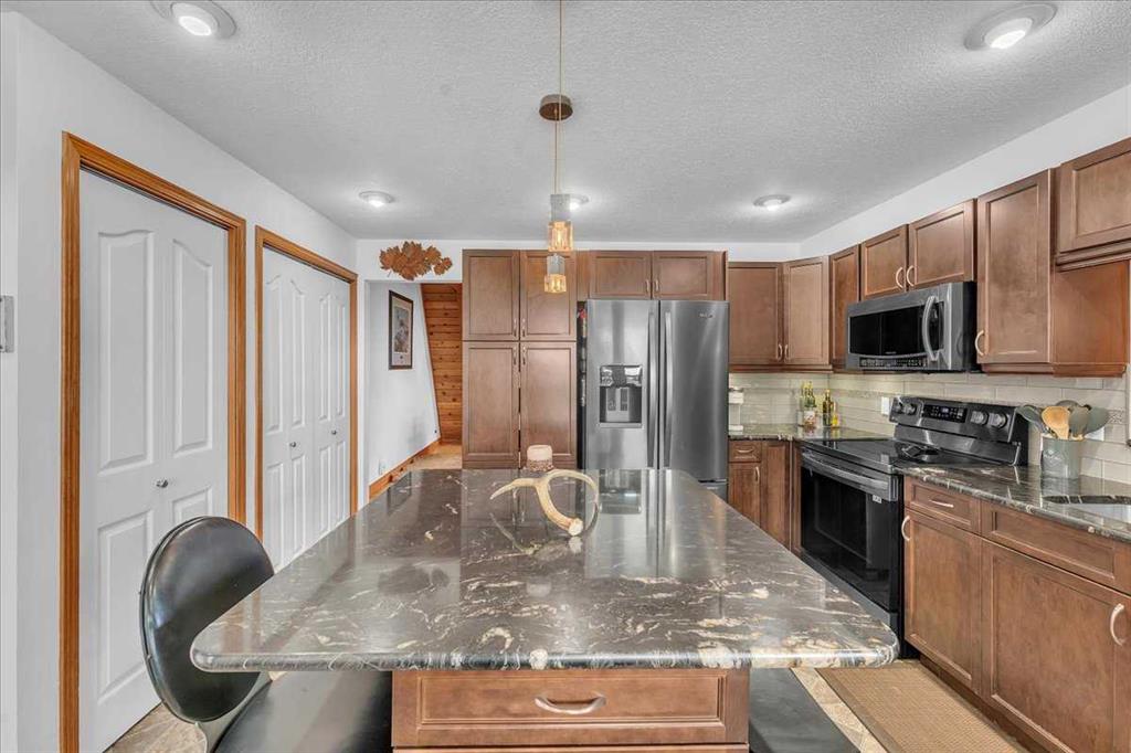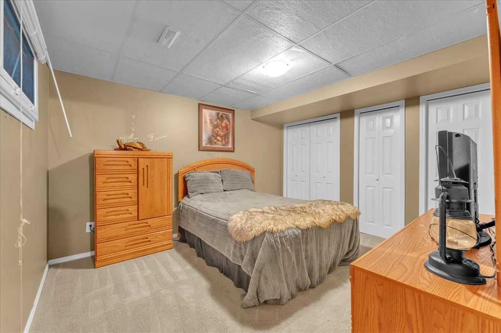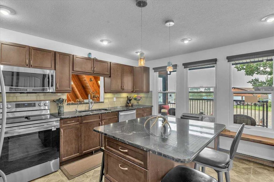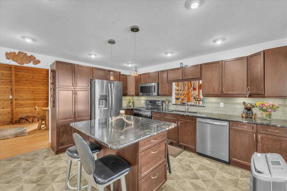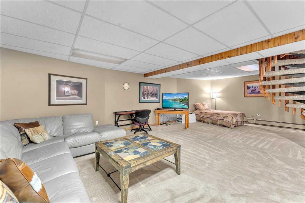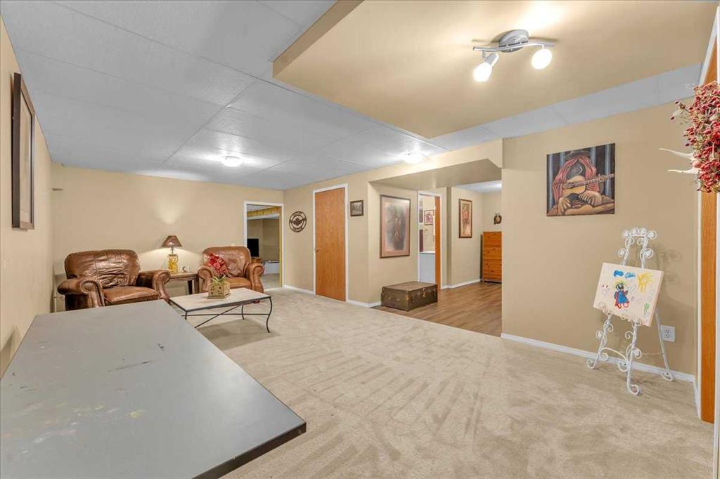 Country Lifestyle with Income Potential! Set on 10.75 acres, this unique property offers Country Living and RV Storage Business Opportunity. Nestled among mature trees and minutes from Strathmore, this unique A-frame home features over 3300 sq.ft. of living space, 4 bedroom, 3 baths, spiral staircase, cedar wood, skylights & large windows that enhance natural light and views. Main floor offers a spacious kitchen, dining, sunken living room, wet bar, rock facing gas fireplace and large windows invite natural light, creating a warm and inviting living space. Plus, laundry and 2 bedrooms with deck access. The wrap around deck off the living room & kitchen offers plenty of space to enjoy the outdoors & views of the surrounding countryside. Upstairs, the loft bonus room overlooks the living room, while the primary suite offers built-in storage, a 3 pc ensuite and a private balcony. The walk-up basement is fully developed with a large rec/games room, flex room, bedroom and storage room. Ideal for family living or entertaining! Upgrades include, hardy board siding, metal roof, skylights, windows and patio doors. Nicely landscaped yard with mature trees, fruit trees & bushes, garden & fire pit area, chicken/duck coop, shed, pump house and underground sprinkler system and with access to the water canal makes irrigations simple. 40×80 heated Quonset with mezzanine, is designed with versatile in mind, with 3 bays, in-floor heat front & rear bay, middle bay workshop, workbench, sink with cold water, forced air, storage room, utility room. Plenty of room for tools, supplies and year round projects. The 12ft garage door provides easy access for large equipment, RVs or recreational vehicles. Plus, an exterior lean-to storage area. Recent upgrades include, metal man door & garage doors. A 22 panel solar system is in place, offering energy efficiency. Five acres are set up as a Turnkey RV Storage Business, accommodating up to 200 units with fencing and separate entrance, creates excellent income potential. Whether you’re seeking a Country Lifestyle, Retreat Close to Town, a Versatile Shop Space or a Ready to go Income Property, this Acreage Property Delivers All!